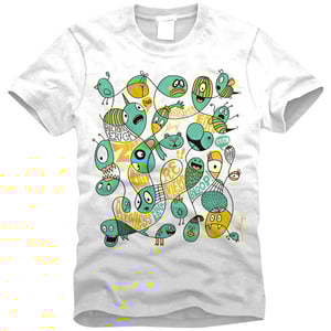 Art by Chris Piascik. 3-color silk screen on 100% white American Apparel unisex t-shirt.
